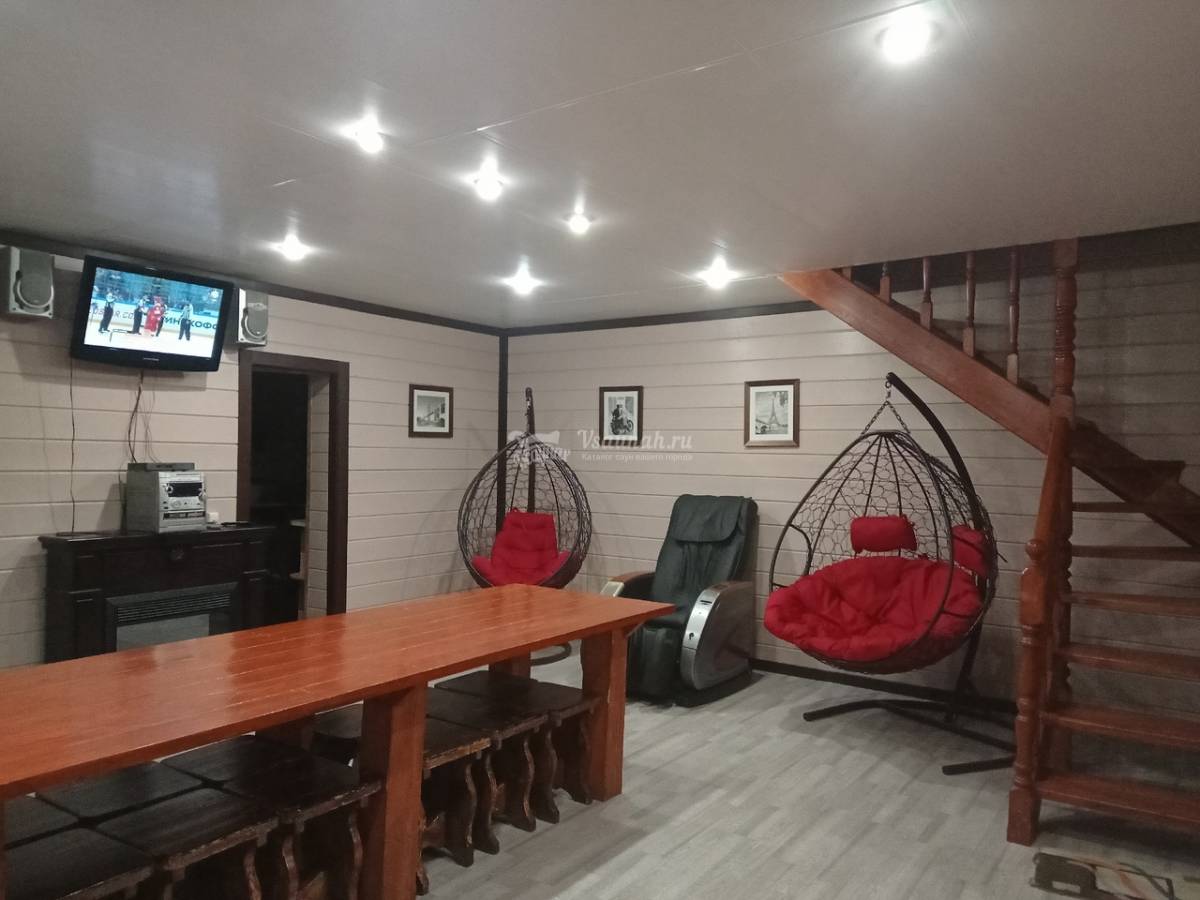 Брали на 5 часов, время пролетело не заметно, потому что много чем можно заняться: парилка, кедровая бочка, теплый бассейн на улице просто улет, чан с горячей водой тоже супер, еще и караоке, а до бильярда даже не добрались, не хватило времени, в след раз будем брать на больше часов, спасибо большое хозяину за такой супер отдых! Всем советуем непременно здесь побывать!!!